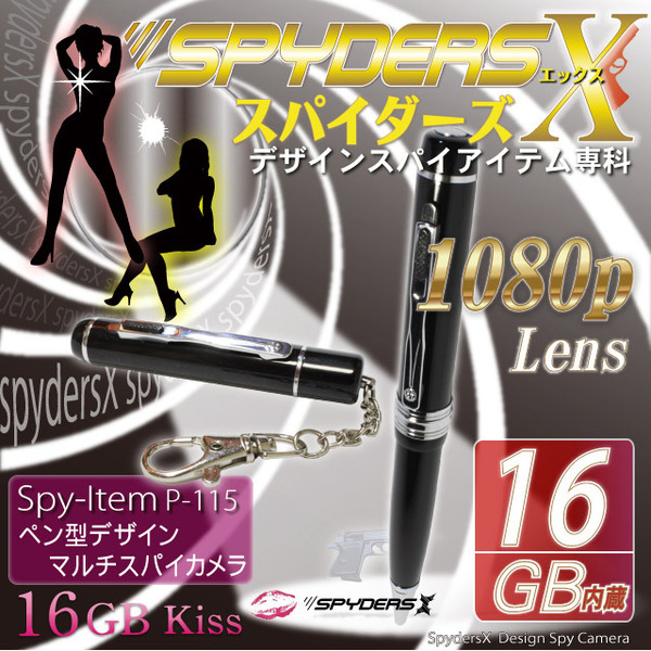 - 【小型カメラ】フルハイビジョン16GB内蔵/ペン型スパイカメラ(スパイダーズX-P115)1200万画素