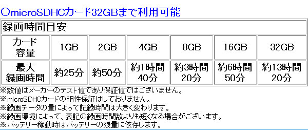 (カード容量/最大録画時間)